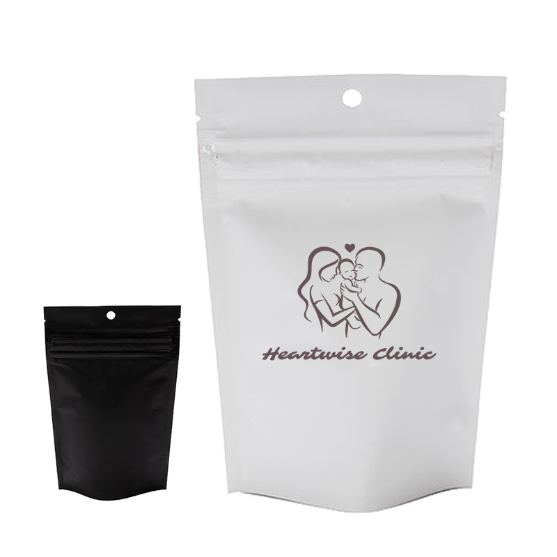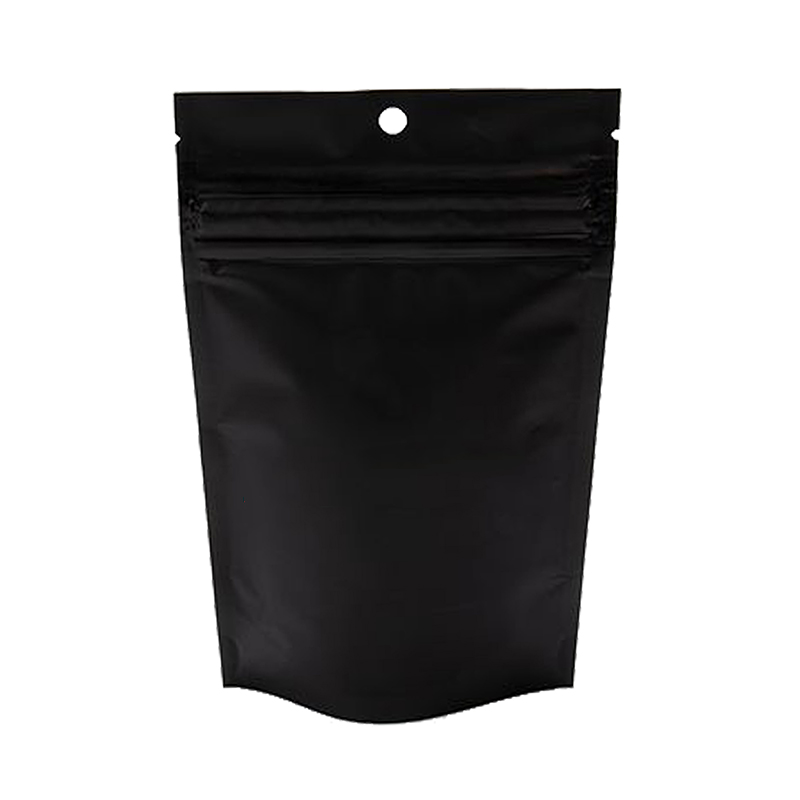 Retail display pouch featuring a secure zipper opening that requires 2 adult hands to open so little ones are kept safe. High barrier construction with a metalized interior to control moisture, freshness, and odor. Opaque material shields contents from view. Superb item for cannabis infused edibles, herbs, capsules, marijuana, and more